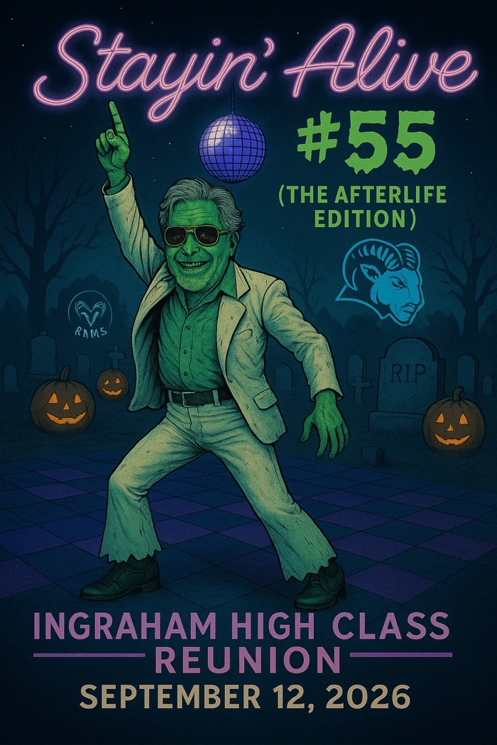This web site was established to serve as an ad-free forum for Ingraham High School’s Class of 1972, and as a tool for managing our 40-Year Reunion events. The site has performed its event management functions well and is funded through January 2028, long enough to support a 55-Year Reunion.